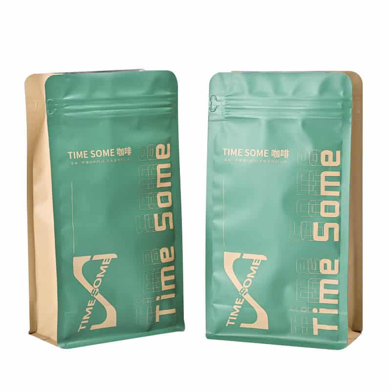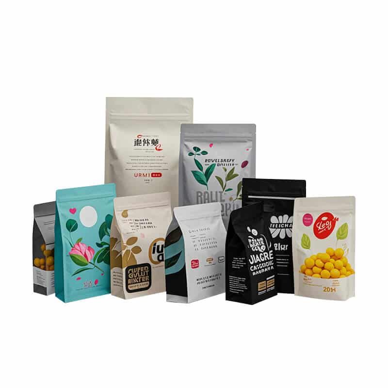 - Bolsa octogonal con fondo plano (opciones de cremallera y válvula de aire disponibles)
